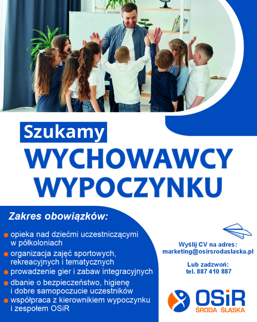 📩 Jak aplikować? Wyślij zgłoszenie na adres: marketing@osirsrodaslaska.pl – koniecznie z dopiskiem: „Wychowawca półkolonii zimowych” oraz poniższą klauzulą lub zadzwoń: tel. 887 410 887: