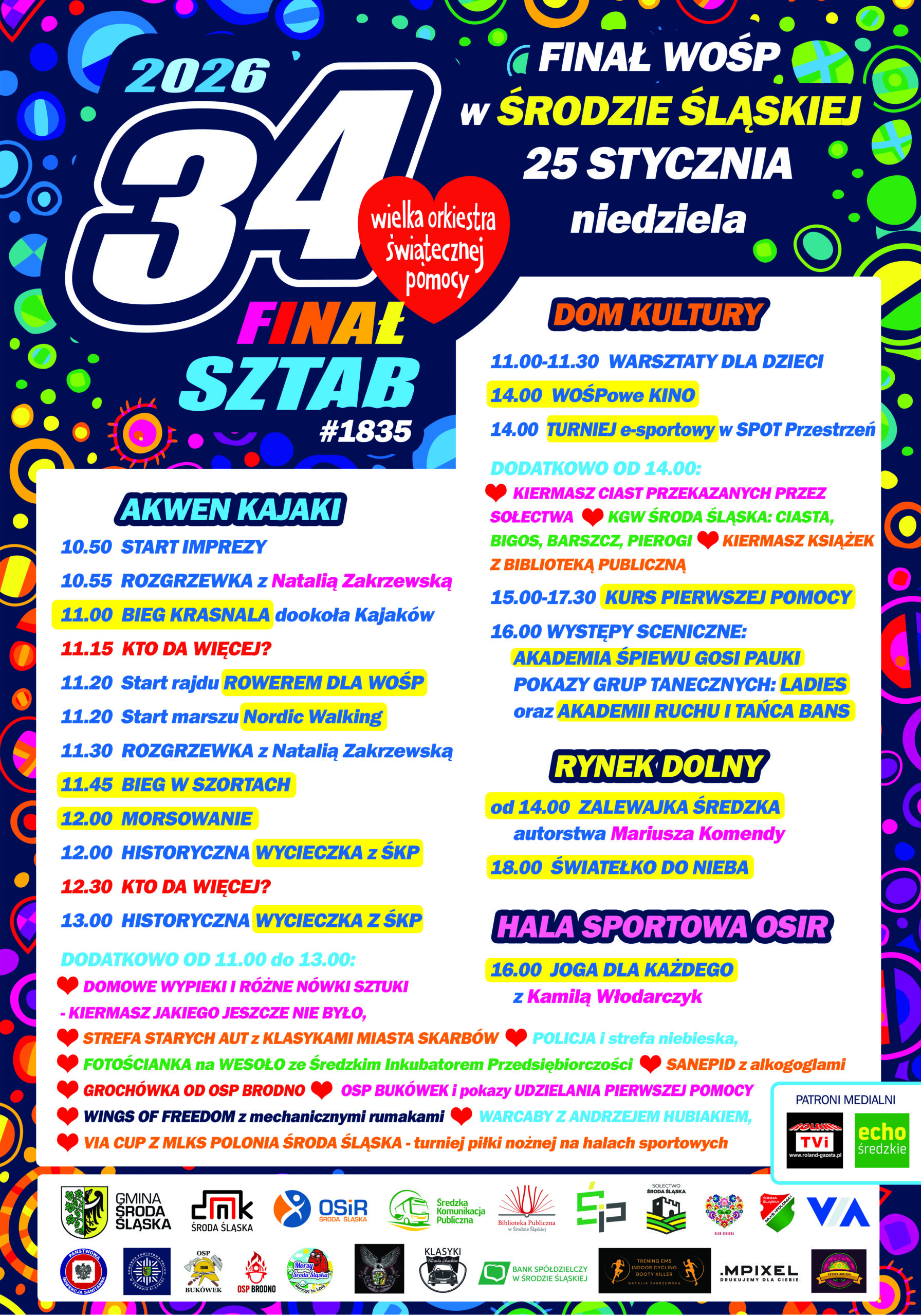 Na uczestników czekają m.in. wydarzenia sportowe i rekreacyjne, atrakcje dla całych rodzin, występy sceniczne, warsztaty, licytacje, morsowanie, joga, biegi, marsze i mnóstwo niespodzianek. Każdy – mały i duży – znajdzie coś dla siebie!