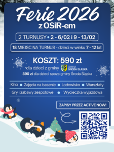 Ferie zimowe zbliżają się wielkimi krokami, dlatego rozpoczynamy zapisy na zimowe półkolonie z OSiRem w Środzie Śląskiej. Jeśli szukacie dla swoich dzieci aktywnego, bezpiecznego i